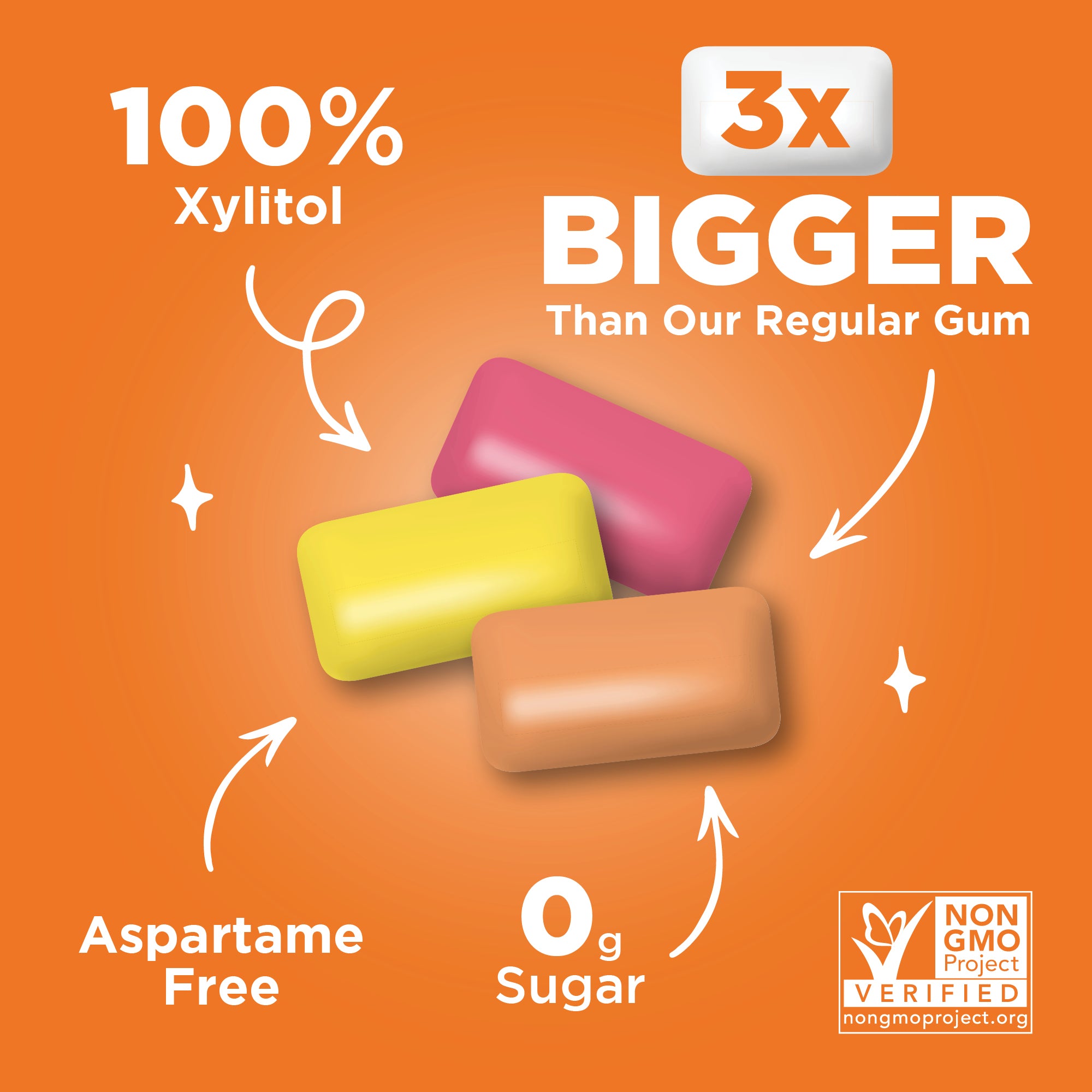 A juicy gum with bold strawberry, banana, and orange flavours, and an extra-large chew to satisfy your cravings!